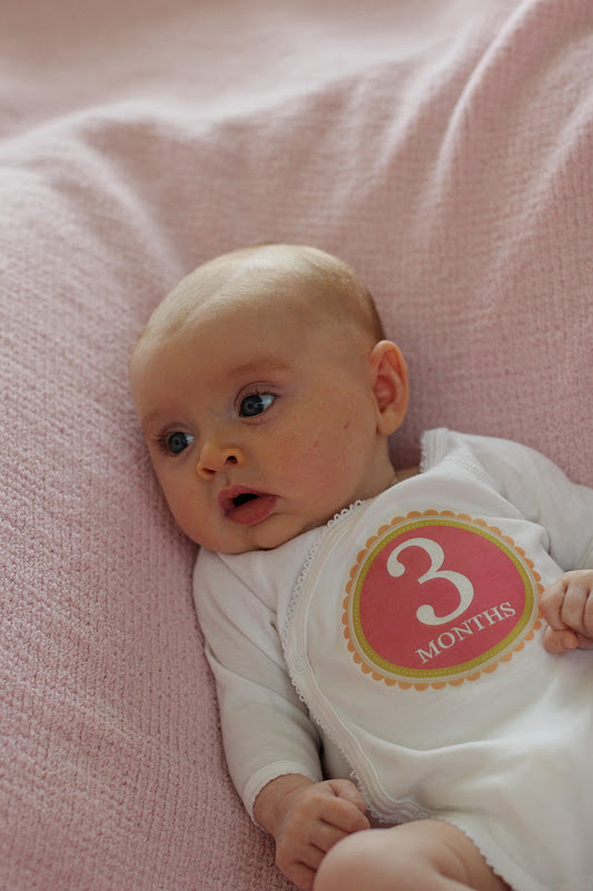 Hard to believe, but our little mouse is growing up. She is 3 months old today! And turning into such an adorable little person. Evie is developing the sweetest personality, and is suddenly so full of smiles, coos, and squeals. And although I was beginning to worry that we weren't funny enough for our discerning little lady, she finally laughed for me today. I was tickling her while I was changing her clothes and she squealed and then started chuckling--it was such a happy, fun sound. :) Evie is a happy, content baby for the most part, but definitely has her strong preferences. She loves to be held (or worn), but her favorite thing is to stretch out next to someone and just talk. She will smile and talk for long periods of time this way, and gets very excited about her conversations. Much to our delight, Evie is also beginning to love books. She especially loves I Kissed the Baby, which was one of our favorites with Charlie. She is very attentive to her books, and likes her "special" time. I hope she grows to love reading as much as her brother does! Evie likes her toys, but LOVES her hands. They are proving endlessly fascinating, and are always in her little mouth.